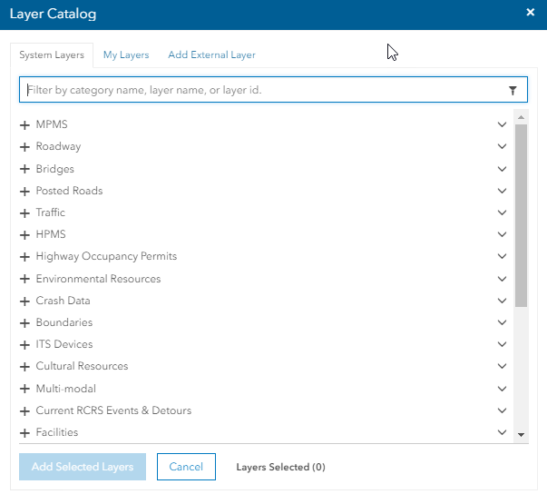 2. If desired, click My Layers to display a list of Layers you have saved for your use.
