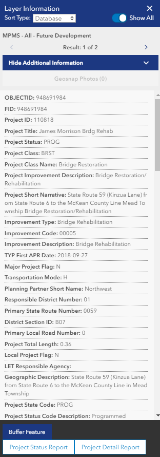 Note: When you click a access the Photo layer, the Layer information window will include images , if available.